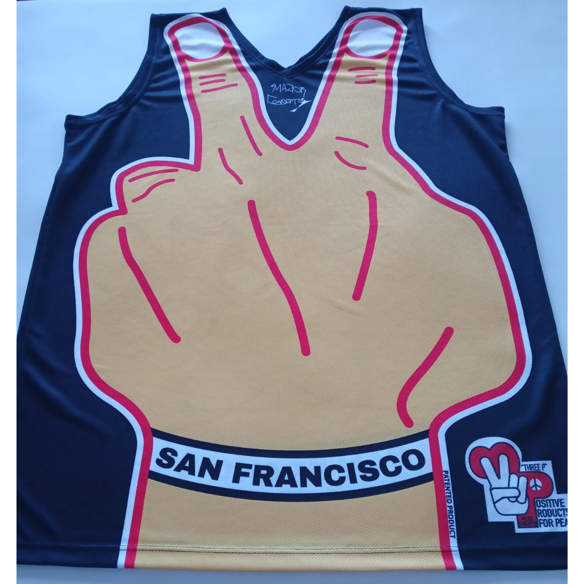 A unisex two-sided Jersey, composed of a mesh 100% polyester material.